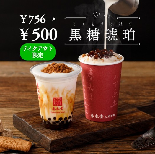 [Taiwanese Cafe Chun Shui Tang] ~Exclusive to LINE registered users~ Brown sugar amber tapioca latte for just one coin!