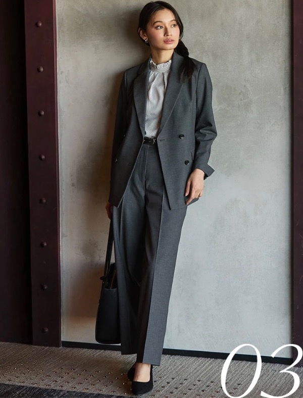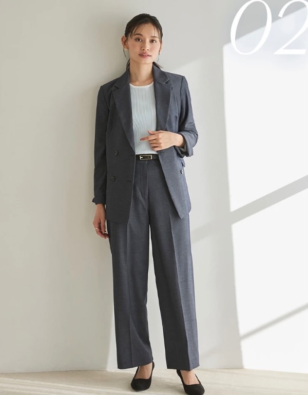 ダブルジャケット・襟付きジャケット・ノーカラージャケット・ジレ・スカート・ワイドパンツ・クロップドパンツと、
