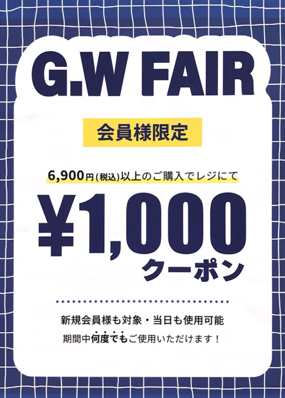 Golden Week Fair: 1,000 yen coupon for app members only.