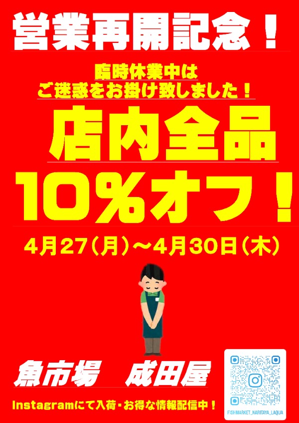 Furthermore, the Kumamon event that was scheduled to take place at the store on April 26th (Sunday) has been cancelled.