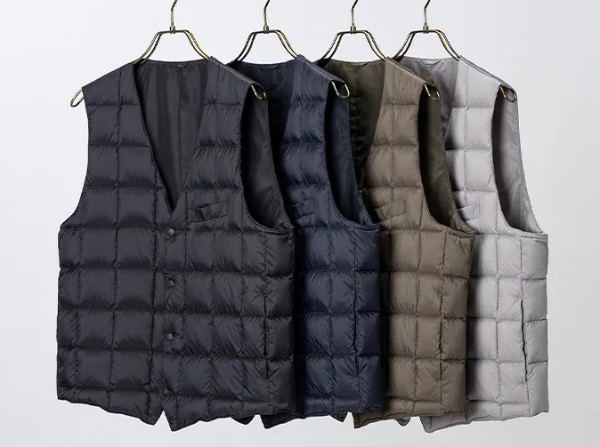 A wool-like down vest goes perfectly with a winter jacket.