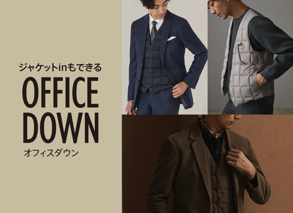 タイドアップのかっちりスタイルからリラックス感漂うラフなビジカジスタイルまで幅広く着まわせるオフィスダウン。