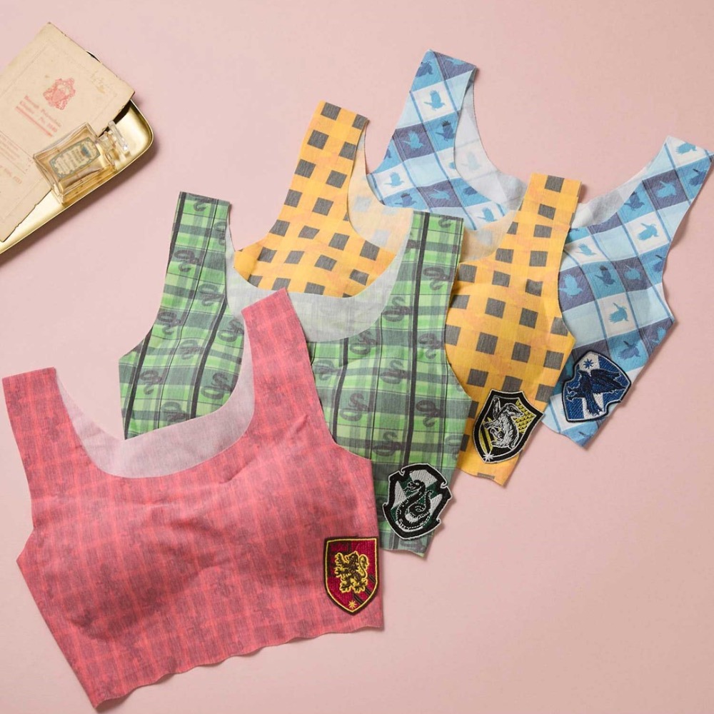 The design features the four houses of Hogwarts School of Witchcraft and Wizardry: Gryffindor, Slytherin, Ravenclaw, and Hufflepuff.