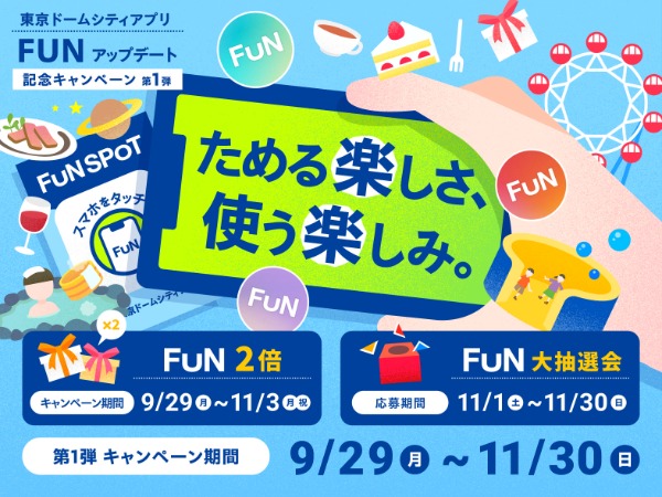 From Monday, September 29 to Sunday, November 30: First commemorative campaign for the Tokyo Dome City app 'FUN' update!