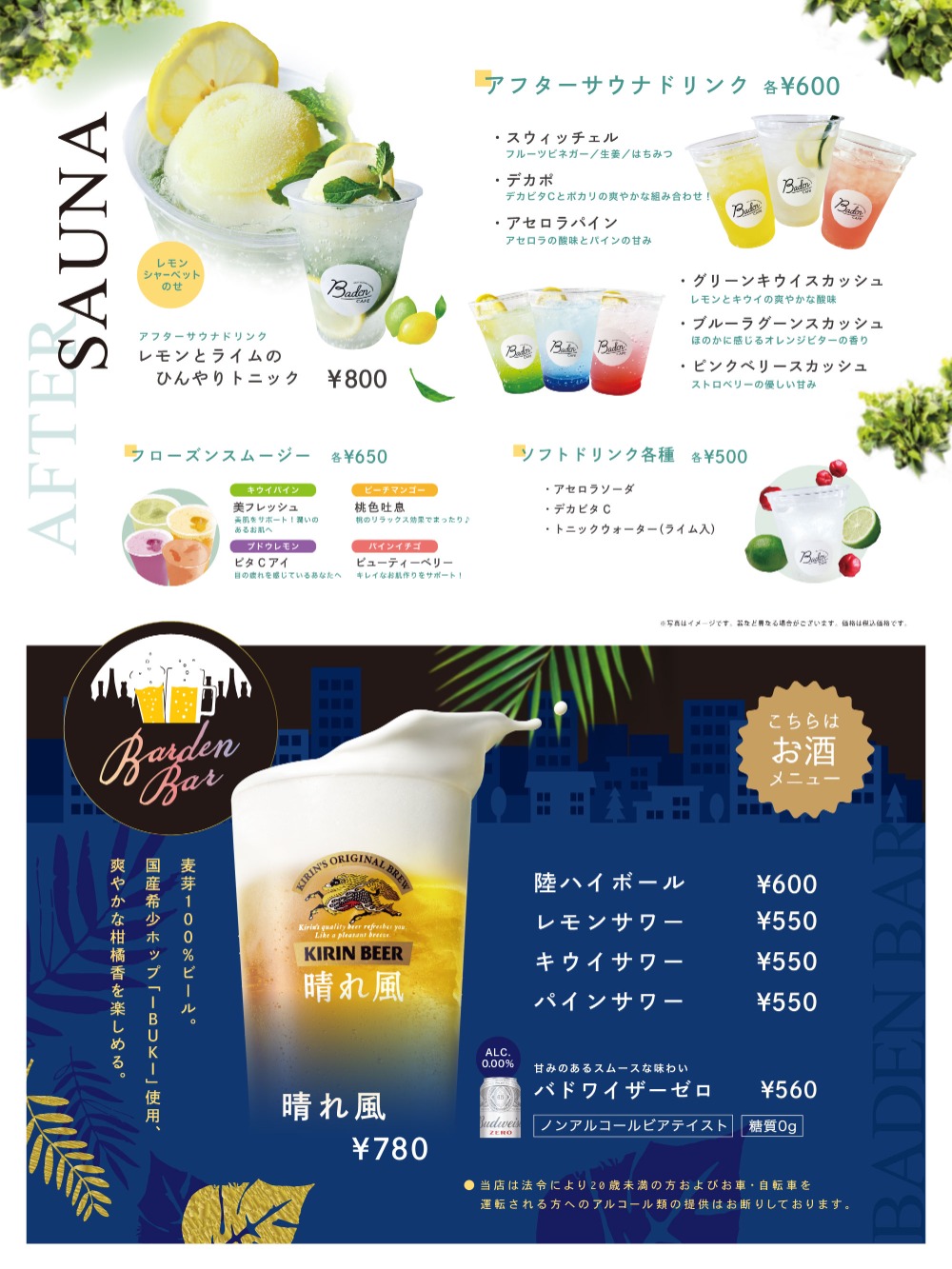 Business hours | 11:30~21:00 (L.O. 21:00) ※After this time, only drinking water will be available for purchase at the 8F Healing Bade reception. ≪Available only to those using the Healing Bade≫ |