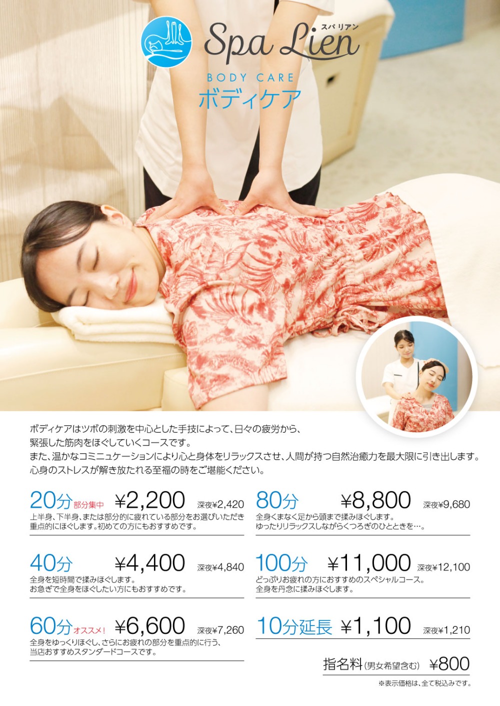 ■ 20 minutes 2,200 yen (late night 2,420 yen)