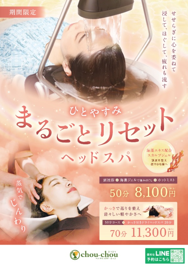 Take a break and reset your head with this 50-minute head spa treatment for 8,100 yen.