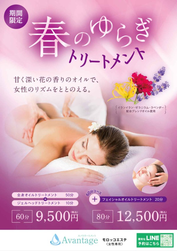 ■Spring Fluctuation Treatment 60 minutes: 9,500 yen