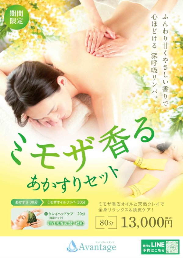 ■Mimosa-scented body scrub set: 80 minutes, 13,000 yen