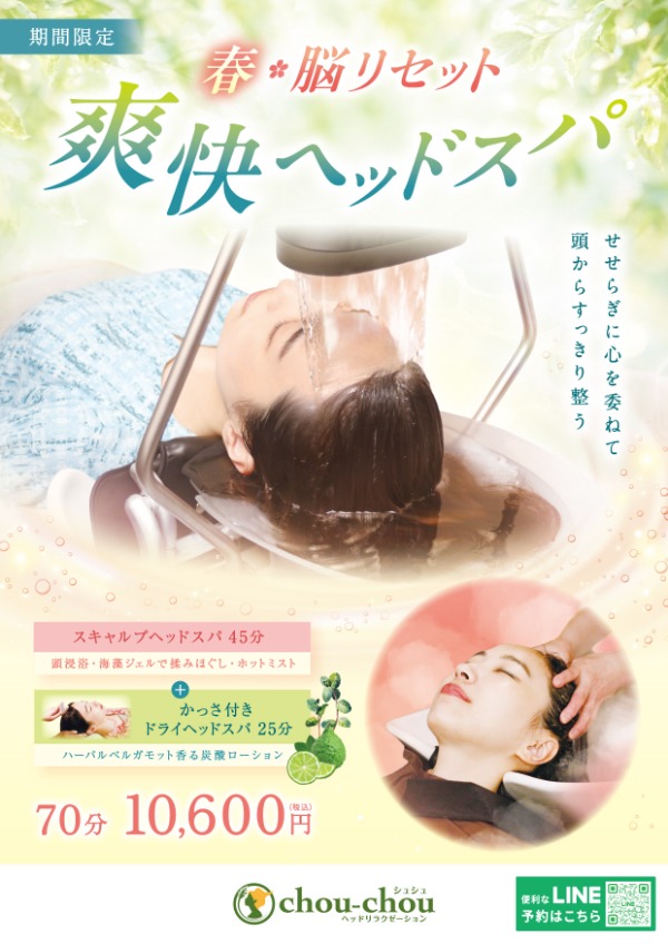 ■Spring Brain Reset Revitalizing Head Spa 70 minutes: ¥10,600