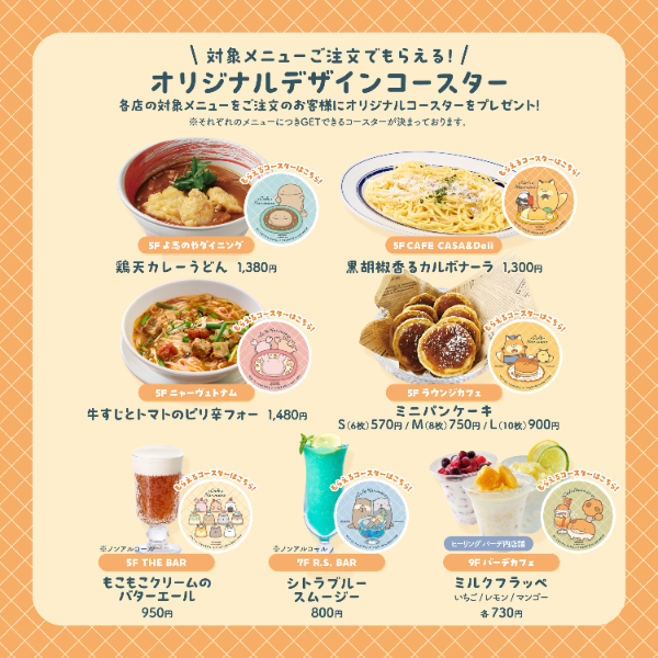 館内のレストラン&カフェで対象メニューを注文いただいた方に、