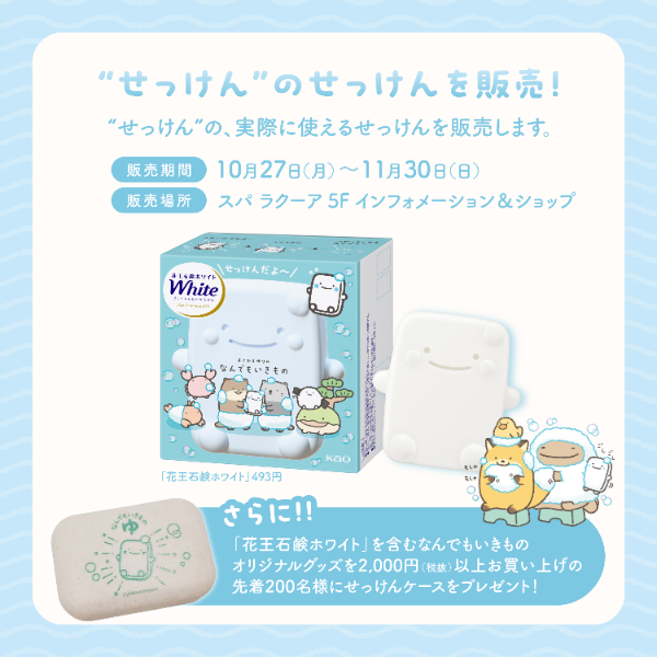 This is a limited-edition admission plan that includesa spa admission ticket and use of the Healing Bade, as well as a plush toy of a bath from the "Nandemo Ikimono" bath series and a commemorative admission sticker.