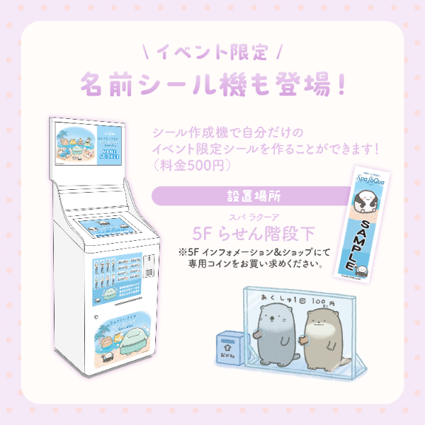 スパ ラクーアの5Fインフォメーション&ショップでスタンプを押し、4個すべて集めた方には、「オリジナルA5クリアファイル」をプレゼントします。
