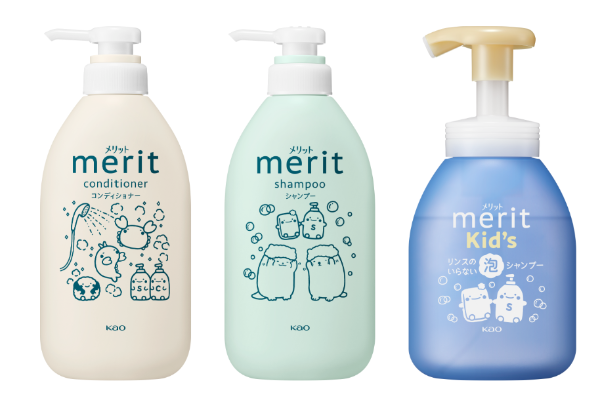 男女浴室内に、花王株式会社のへアケアブランド「merit(メリット)」の、