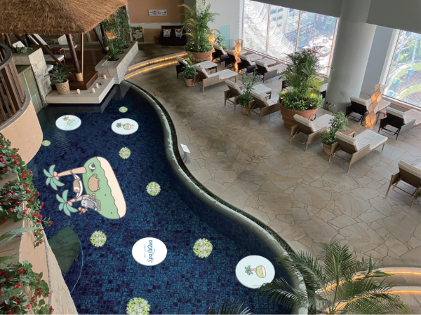 スパ ラクーア館内全フロア(5F~9F)を、なんでもいきもののキュートな装飾で彩ります。