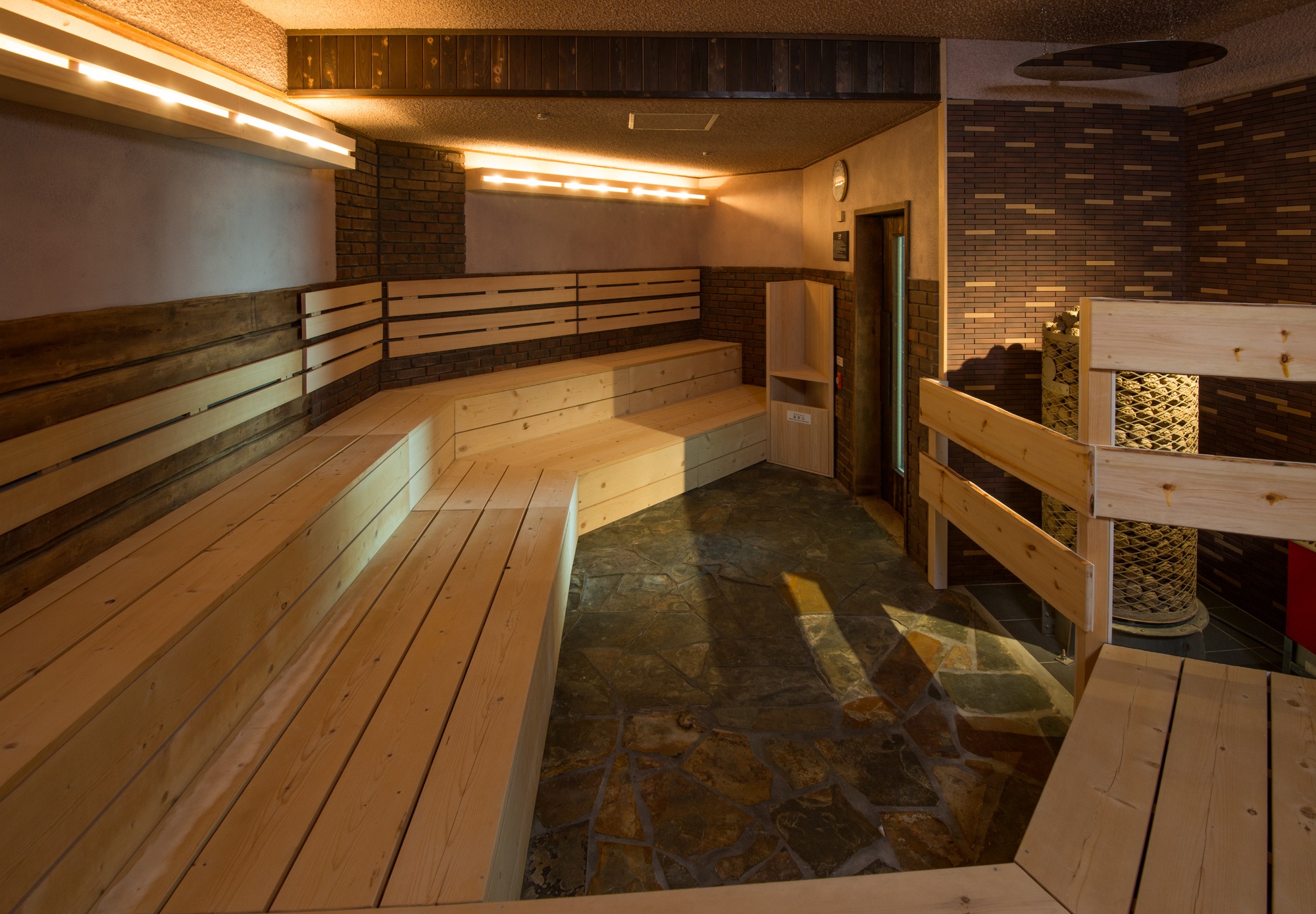 A 70°C sauna room located in the men's open-air bath.